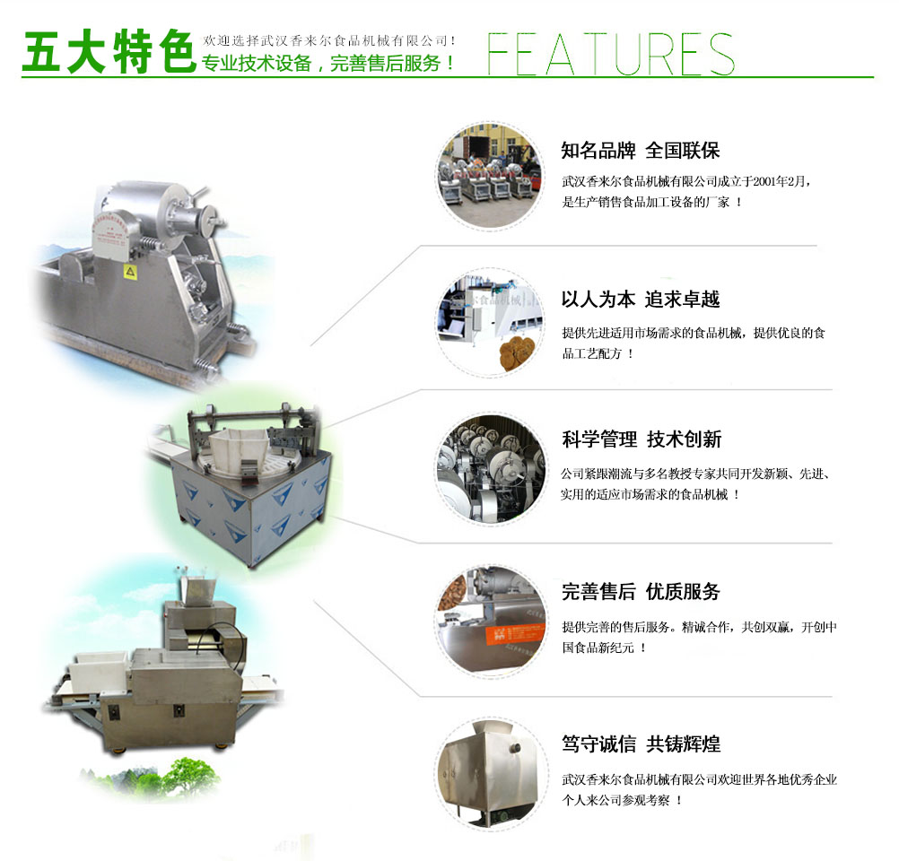 武漢香來爾食品機械有限公司成立于2001年2月,是生產銷售休閑食品加工設備的廠家。公司緊跟市場潮流與華工、華農多名共同開發新穎、實用的適應市場需求的食品機械,自有車、刨、鉆、銑、剪板、折彎等先l進機床100多臺 套。7年誠信通會員,產品出口拉美、非洲、東南亞、歐洲等很多國家和地區,國內很多食品企業都是我們的合作伙伴。目前公司專門設立一個的售后 服務班子,在公司逐步發展強大的過程中,一直堅持售后服務的同步發展,精良的食品設...